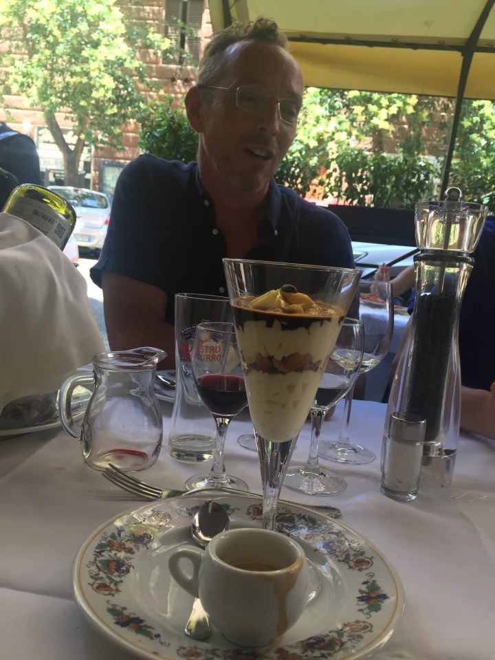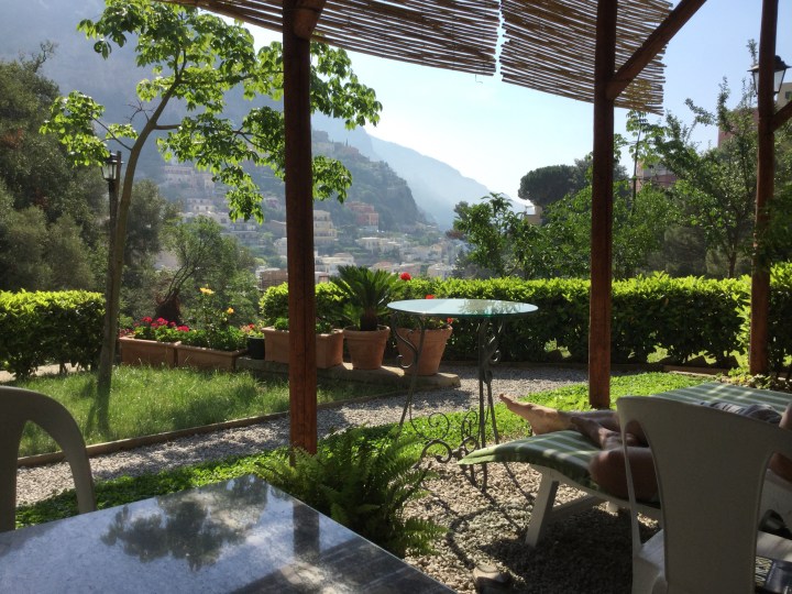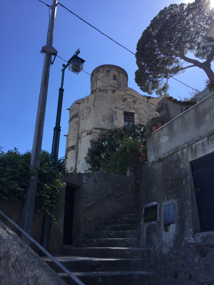 We are surprised at how little we remember about the village – except for the bloody bus stop where one night we waited for what felt like hours, in the rain, for a bus that was not arriving. Eventually we all bundled into a taxi, only to be told that the busses were on strike. After much deliberation and wandering around, we find the place we stayed in. It is an old tower that must have been part of the original settlement. (I remember that the floor in our room had a glass cover through which one could see the kitchen below, and that it was all very close and intimate. Dianne did mention that farting and snorting kept her awake….) The little front garden where Victor did yoga is covered in a lush vine that provided the perfect setting for wine in the afternoon, looking across the endless blue ocean. Ravello is beautiful and just a tad less touristy than Positano.