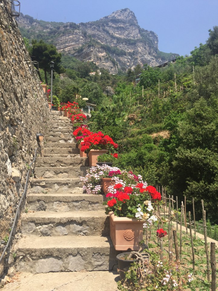 This morning we are up early to enjoy the last few hours of our scooter. We scoot up the mountain – hair raising bends that I find almost impossible to manouvre. Take note – this scooter has an engin no bigger than a stick blender, carrying two men weighing in at – well never mind. So we tututututututut up the hill, hardly able to make 10km/h, swerving like drunks every time a truck or bus come hurtling down the mountain, leaving so little space for us that I could feel the skin being torn off my knee by the passing vehicle. Sometimes, life is all about “daring greatly” (Brene Brown again). I love taking risks – always thinking “if so and so can do it, I can do it”. Seeing people of all shapes, sizes, ages, denominations and personalities scootering away in Italy, why can’t I? And here I am – alive to tell the story, having seen the most breath taking views, feeling the ocean breeze in my face, getting the most exhilarating adrenalin rush and being able to tell the story.